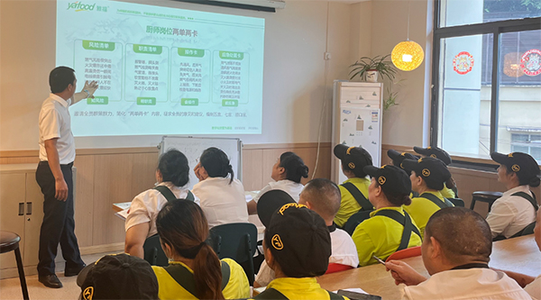 接著做專題培訓(xùn),本次培訓(xùn)由餐廳安全顧問黃濤結(jié)合了近年來大量事故案例對廚房常見的四種火災(zāi)(油鍋起火、油煙管道火災(zāi)、電器類火災(zāi)、氣體泄漏引發(fā)火災(zāi))的成因及撲救方法進行了講解,并對餐廳消防器材(滅火器、滅火毯、消防水帶)的正確使用方法進行了培訓(xùn)。