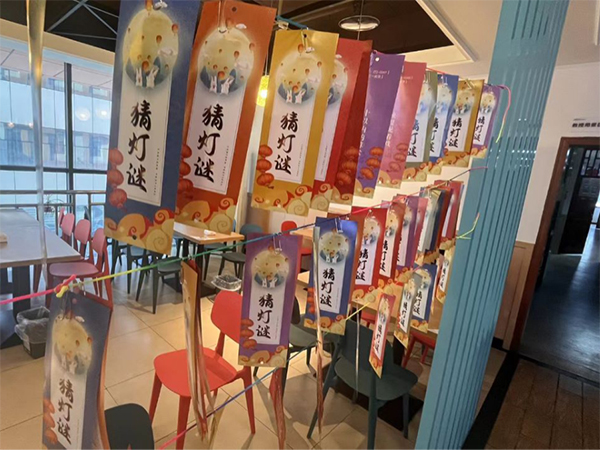 同日,雅福心悅餐廳二樓職工餐廳也舉辦了以“慶中秋,共團圓”為主題的活動。猜燈謎、贏獎品環(huán)節(jié)依舊熱鬧非凡,職工們積極參與,樂在其中。